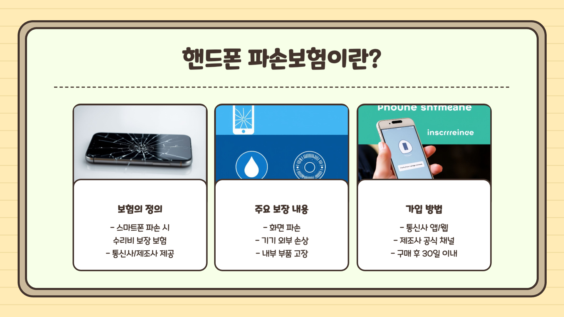 스마트폰은 일상생활에서 없어서는 안 될 필수품이지만, 실수로 떨어뜨리거나 충격을 주어 화면이 깨지거나 파손되는 일이 종종 발생합니다. 이러한 상황을 대비해 많은 사람들이 핸드폰 파손보험에 가입하고 있는데요. 이번 글에서는 핸드폰 파손보험 처리 방법과 주의사항, 그리고 처리 과정을 원활하게 진행하기 위한 팁을 알아보겠습니다.