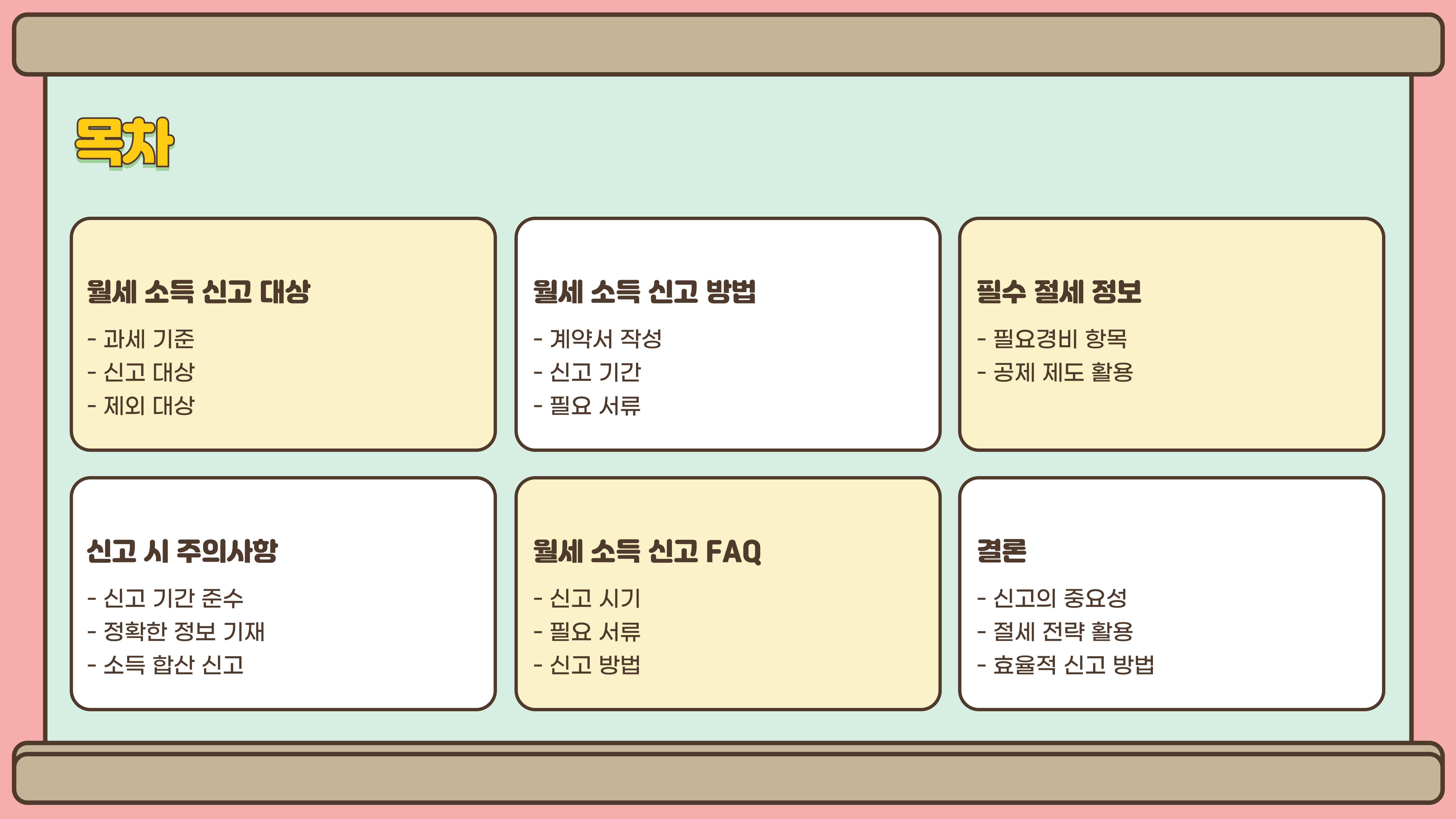 - 월세 소득 신고 대상 및 신고 방법 가이드 목차