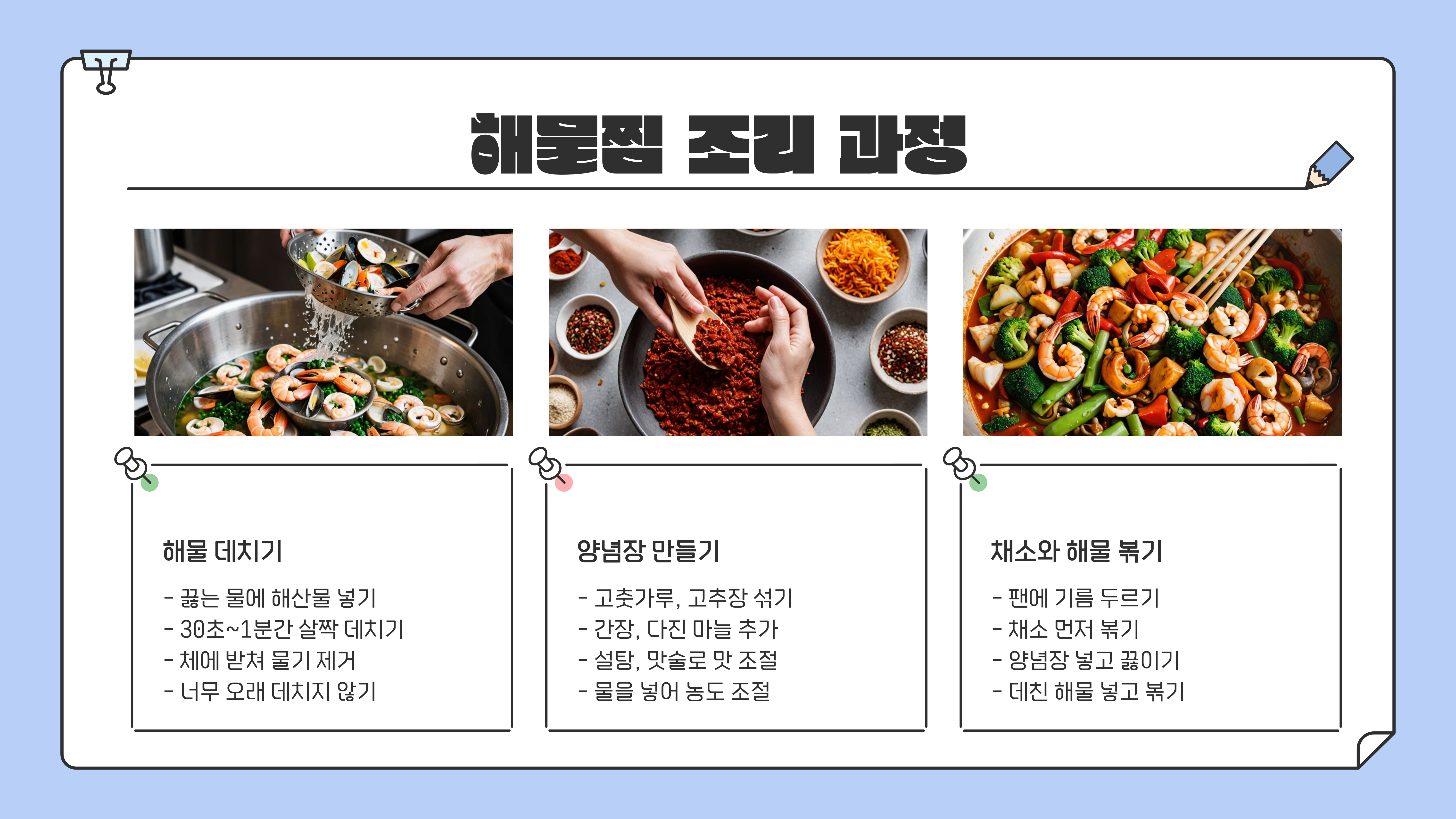 1️⃣ 해물 데치기 (비린내 제거 & 식감 살리기)